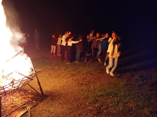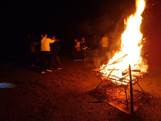 空を見上げると、空いっぱいに星、星、星。こんなにたくさんの星があることにびっくり。天候に恵まれて、星空の下でキャンプファイヤーを行いました。じゃんけん列車で大盛り上がりです。